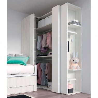 Se puede colocar la parte estrecha del armario al lado de la cama o compacto y su apertura total permite acceder al interior del armario de forma cómoda.