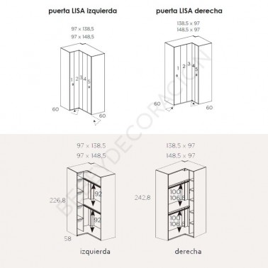 - Elige el tamaño del armario y si la parte corta la quieres a la izquierda o derecha