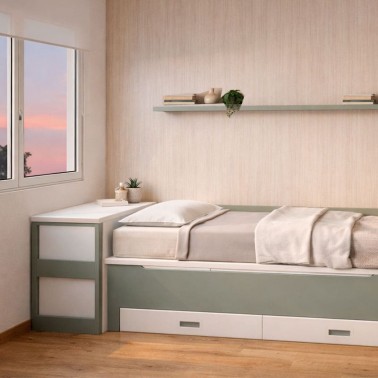La estructura está realizada en tablero melamínico: es un tablero de aglomerado de partículas de madera con un revestimiento de melamina que da color y vida al mueble.
