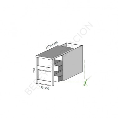 El ancho de la mesa lo podrás elegir de 35 cm o de 50 cm.
