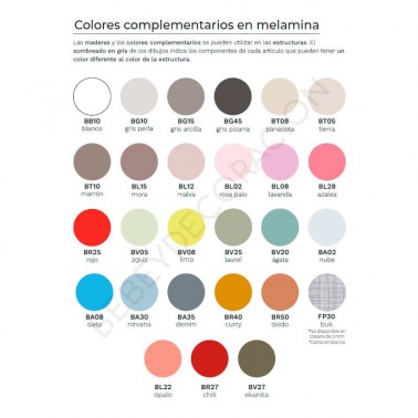 La estructura está realizada en tablero melamínico: es un tablero de aglomerado de partículas de madera con un revestimiento de melamina que da color y vida al mueble.