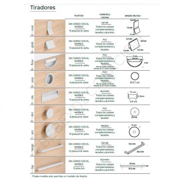 - Elige el color entre los colores ofertados y los tiradores (si eliges un tirador con cargo debes consultarnos)