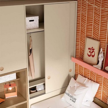 ✔ Armario con dos puertas correderas y un fijo inferior para adosar la cama.