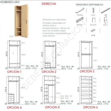 El armario ofertado es de 98 cm de ancho. Para otras medidas consultar.