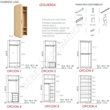 Puedes elegir el color del armario y entre los tiradores sin cargo MINI-TANGO-HIP Y SOUL.
