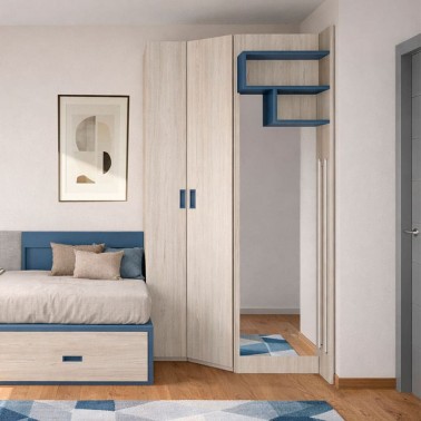 La estructura está realizada en tablero melamínico: es un tablero de aglomerado de partículas de madera con un revestimiento de melamina que da color y vida al mueble.