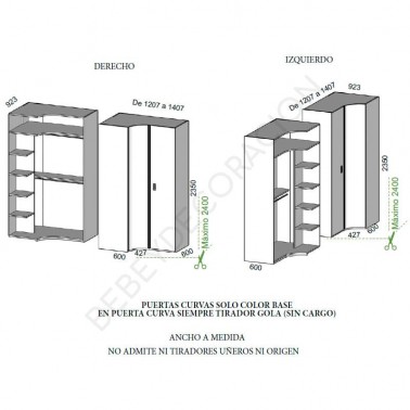 ✔ Armario de rincon con puertas batientes y curvo