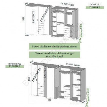 ✔ Armario rincón chaflán con dos puertas plegables y una batiente y cajones.
