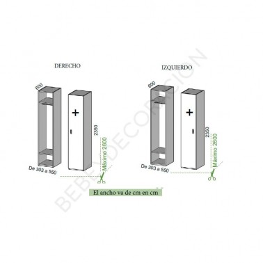 Medidas: desde 30,3 a 55 cm ancho x hasta 235 cm alto x 60 cm fondo