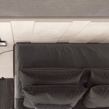 Cabezal para cama para joven adulto o cama de matrimonio formado por paneles de 3 cm y 1,9 cm con un regrueso perimetral de 1,9 cm.