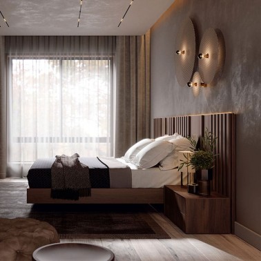 Cabezal para cama para joven adulto o cama de matrimonio formado por un plafón y listones de 5 cm con distancia entre ellos de 4 cm.