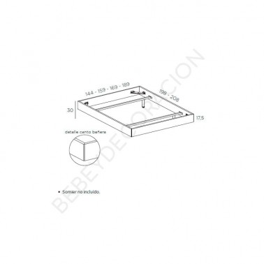 SOLO INCLUYE EL ARO Y PATAS, NO INCLUYE SOMIER NI COLCHÓN NI OTROS ELEMENTOS DE LAS IMÁGENES.