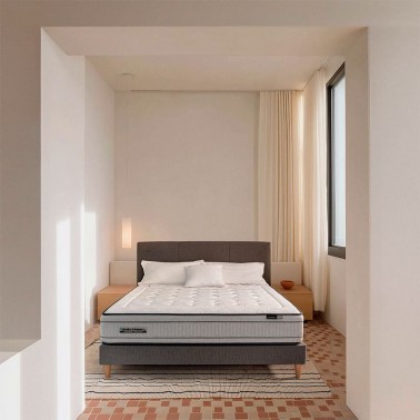 - Núcleo de muelles ensacados tecnología SpringSac para el colchón SpringSac: permite una respuesta precisa y silenciosa a cada movimiento, proporcionando independencia de lechos, ventilación constante y reparto uniforme del peso que previene el hundimiento con el uso. La tecnología SpringSac distribuye 725 muelles en colchón de 150x190. Su altura es de 17 cm.