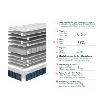 - Gel, muelle ensacado medio, visco