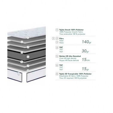 - Acolchado sistema tapa-tapa cara superior y continuo cara inferior