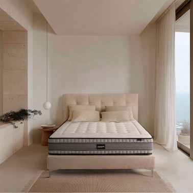 - Núcleo de muelles ensacados tecnología SpringSac para el colchón SpringSac: permite una respuesta precisa y silenciosa a cada movimiento, proporcionando independencia de lechos, ventilación constante y reparto uniforme del peso que previene el hundimiento con el uso. La tecnología SpringSac distribuye 725 muelles en colchón de 150x190. Su altura es de 17 cm.