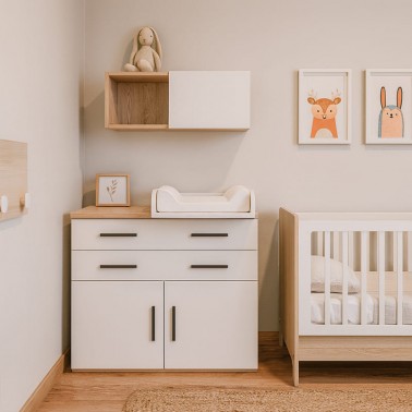 Puedes elegir también el cambiador para poner encima de la cómoda. No incluye colchoneta.