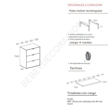 - Tienes una imagen en la que se indican las diferentes opciones de alturas y números de cajones. Si no encuentras lo que buscas pregúntanos