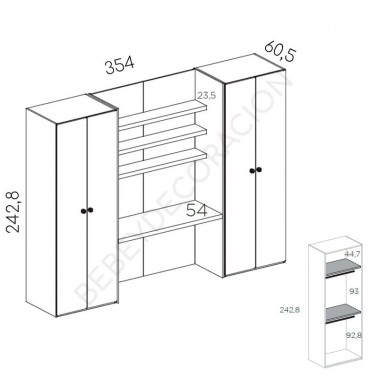 Fondo 60,5 cm x ancho 354 cm x alto 242,8 cm