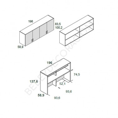 Te ofertamos el escritorio de 196 cm de largo. Dos opciones de altura: 221,1 y 237,8 cm