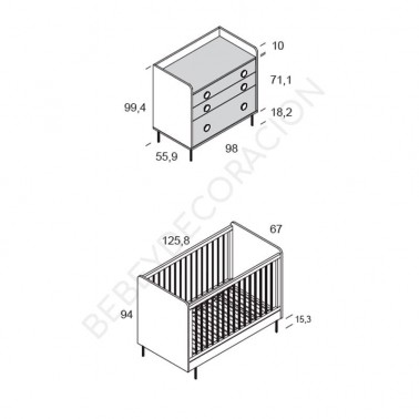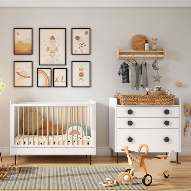 ✔ Habitación formada por cuna Artic y cómoda Lago con patas metálicas en negro o blanco