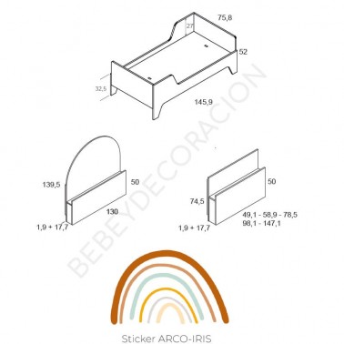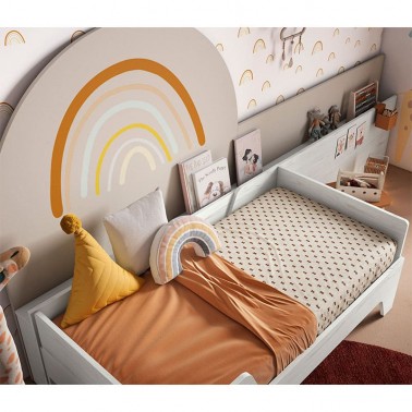 ✔ Habitación formada por camita y dos cabezales con estantes. Incluye sticker Arco-Iris