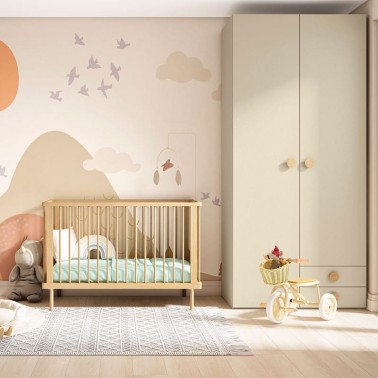 ✔ Habitación formada por cuna de madera Deva y armario de dos puertas y dos cajones