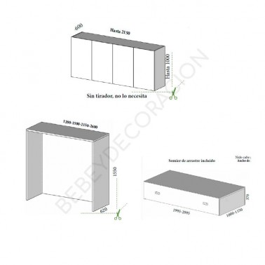 ✔ Habitacion completa formada cama nido y armarios puente. No incluye armarios laterales.