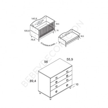 No incluye resto de elementos de la imagen como quitamiedos, decoración, estantes, cambiador...