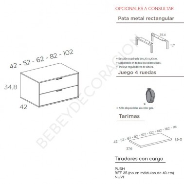 - Tienes una imagen en la que se indican las diferentes opciones de alturas y números de cajones. Si no encuentras lo que buscas pregúntanos