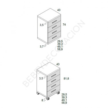 Medidas de la mesita Up cuatro cajones Ros