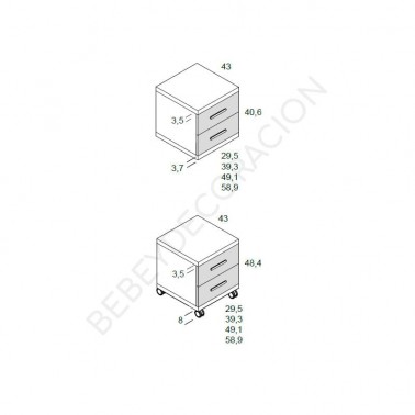 Modulo o mesita con dos cajones para colocar debajo del escritorio o como mesita de noche.